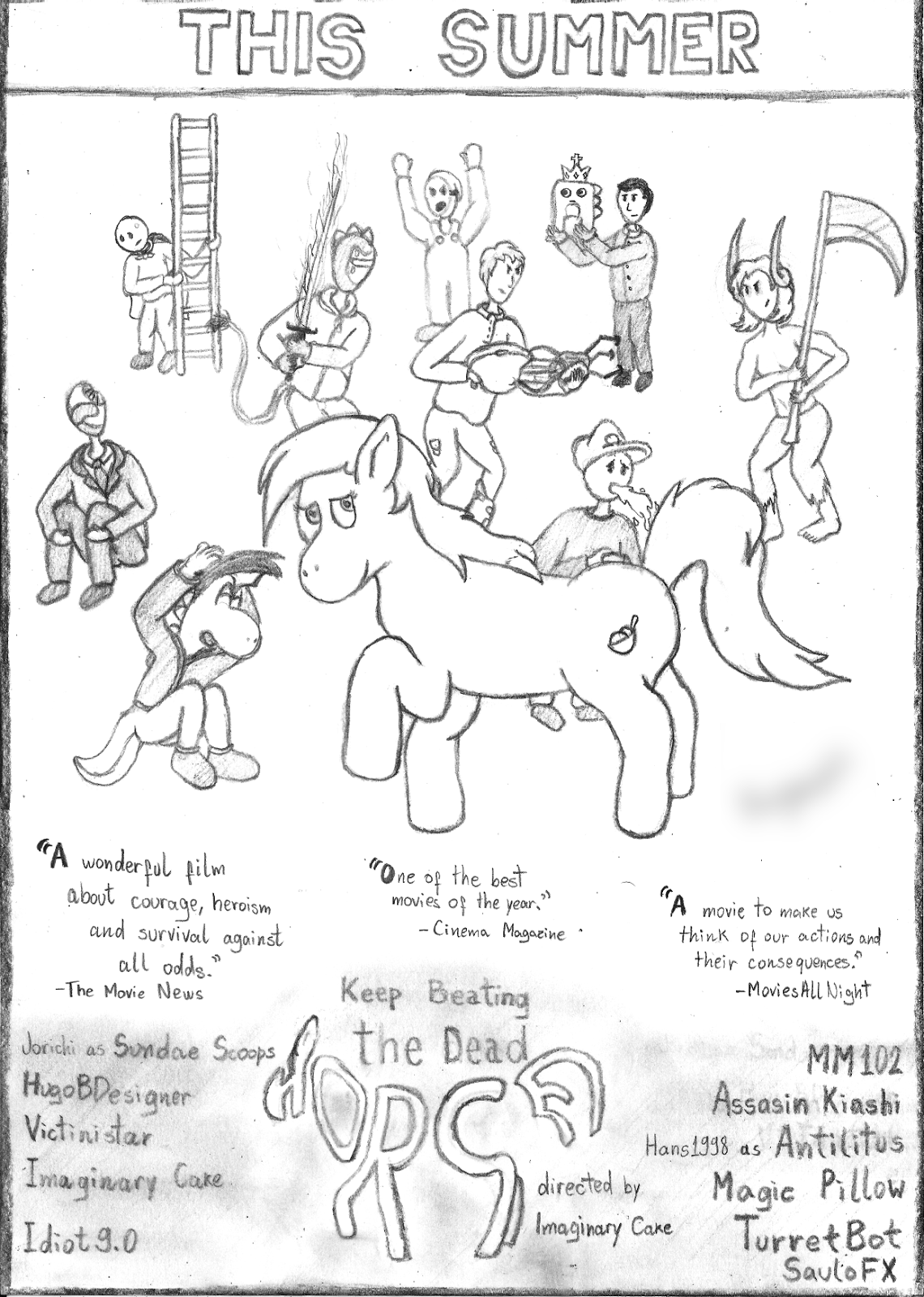 I would be fine if this was re-worked, (into something by a real artist) but I don't think it belongs with the other drawings.QwertymanO07 wrote:So I know this is unannounced, but I just made something for this. I don't think I should post it, but it probably won't mess anything up continuity-wise. Feel free to completely ignore this if you like because it's so poorly drawn.